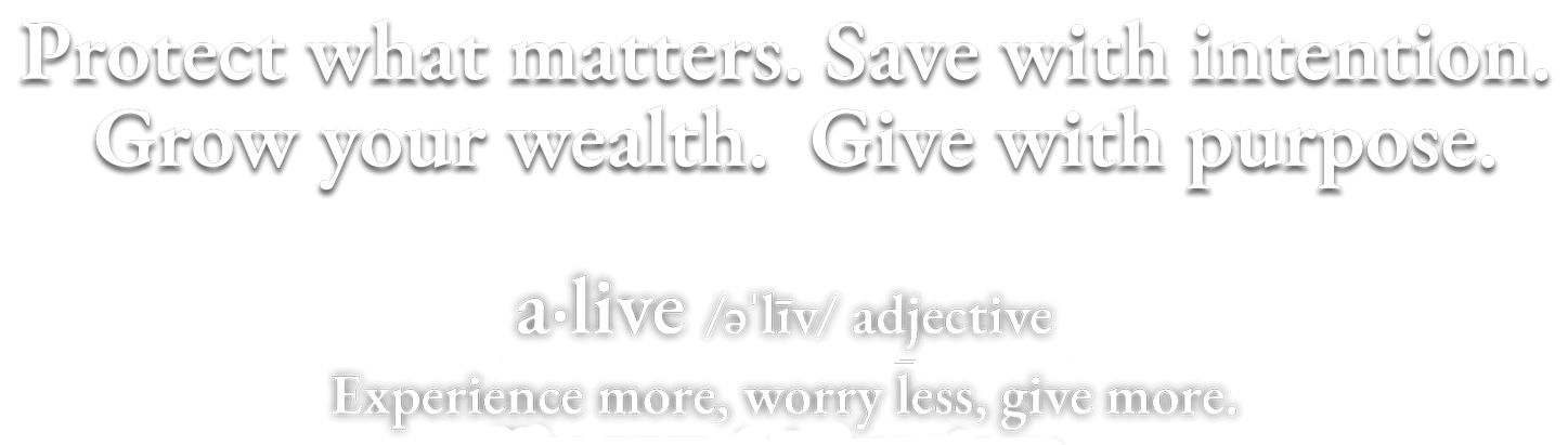 Alive & Wealth customizes personal guidance—fueled by knowledge and life experiences—to help everyone worry less, live more, and give more.